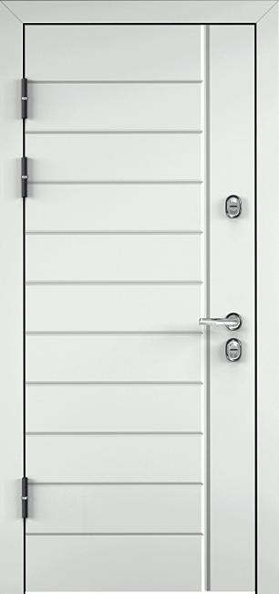 Эта белоснежная входная дверь с линиями №30 станет стильным и надежным элементом для любого интерьера. Благодаря отделке из панелей МДФ с ПВХ-покрытием, дверь выглядит элегантно и обладает высокой устойчивостью к внешним повреждениям. Внешний вид дверного полотна дополнен утонченными линиями, что придает ей современный, лаконичный вид. Прочный каркас из профильных труб 50х25 мм и лист металла толщиной 2 мм обеспечивают отличную защиту и долгий срок службы. Два контура резинового уплотнителя эффективно защищают от шума и холода, создавая комфорт в помещении. Замки Просам и Мосрентген с тремя ригелями гарантируют надежную безопасность. Дополнительно можно заказать зеркала, стеклопакеты и кованые элементы, что делает дверь универсальной для разных дизайнерских решений. Квартирная дверь входная белоснежного цвета с линиями №30 от производителя: быстрое изготовление и монтаж в Щербинке, индивидуальные размеры, широкий выбор материалов и фурнитуры, официальная гарантия до 10 лет.