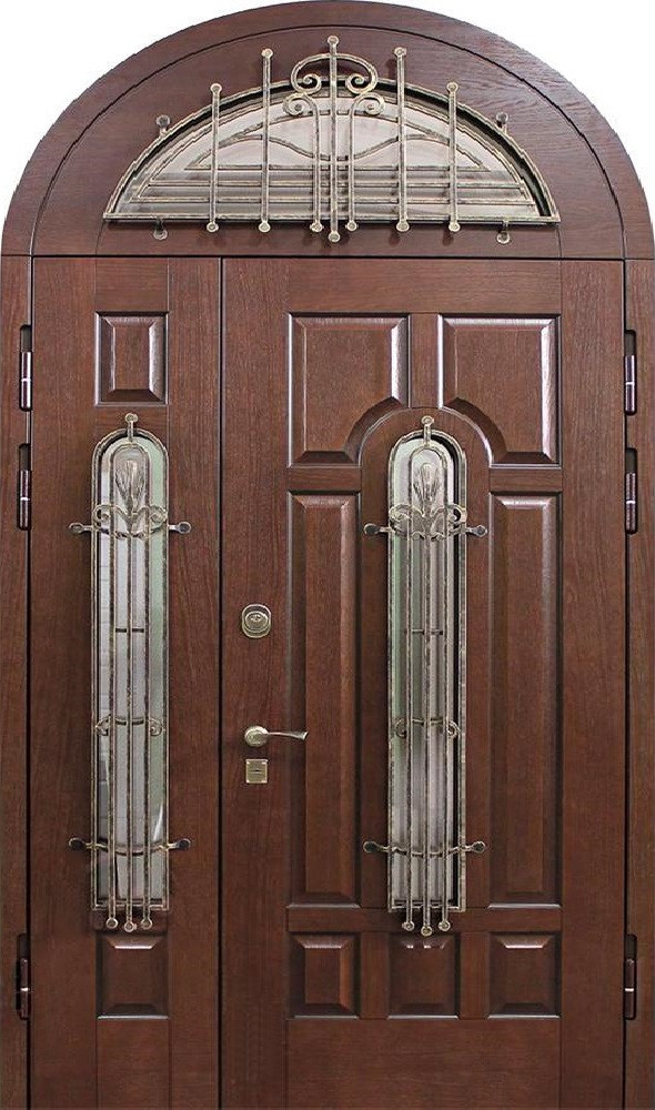 Арочные конструкции всегда придают входу выразительность и особый статус, а если добавить две створки и стеклянные вставки, дверь превращается в центральный элемент фасада. Натуральное дерево в отделке подчеркивает солидность и гармонично сочетается с металлом, из которого выполнено основание: каркас и полотно из профильных труб и стальной лист толщиной 2 мм обеспечивают прочность и долговечность. Для удобства и безопасности используются два замка разного типа — сувальдный и цилиндровый, оба с тремя ригелями, что делает взлом крайне затруднительным. Двухстворчатая арочная дверь со стеклом в частный дом №14 может изготавливаться любого размера и адаптироваться под архитектуру конкретного здания. Возможна установка дополнительных элементов: зеркало, стеклопакет, кованые детали или даже видеодомофон. Резиновое уплотнение по двум контурам защищает от сквозняков, а возможность выбора отделки и фурнитуры открывает простор для индивидуального дизайна. Двухстворчатая арочная дверь со стеклом в частный дом №14 от производителя: быстрое изготовление и монтаж в Щербинке, индивидуальные размеры, широкий выбор материалов и фурнитуры, официальная гарантия до 10 лет.