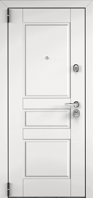 Белая металлическая дверь входная для дома №33 выделяется своим свежим и современным обликом. Универсальный белый цвет делает её уместной как в частном коттедже, так и в квартире или офисе, визуально добавляя простора и подчеркивая аккуратность фасада или интерьера. Конструкция двери основана на стальном листе толщиной 2 мм и усилена профильными трубами, что гарантирует надежность и устойчивость к нагрузкам. Важная особенность модели — наличие терморазрыва в полотне и коробке: благодаря этому дверь не промерзает в зимний период, исключается конденсат и сохраняется комфорт внутри помещения. Внешняя и внутренняя отделка выполнена из МДФ с ПВХ-покрытием, которое защищает поверхность от влаги и механических повреждений, сохраняя первозданный вид надолго. Два контура уплотнителя обеспечивают герметичность и дополнительную защиту от сквозняков. Эта дверь удачно сочетает эстетику и практичность, создавая надежный вход в любое жилище. Белая металлическая дверь входная для дома №33 от производителя: быстрое изготовление и монтаж в Щербинке, индивидуальные размеры, широкий выбор материалов и фурнитуры, официальная гарантия до 10 лет.