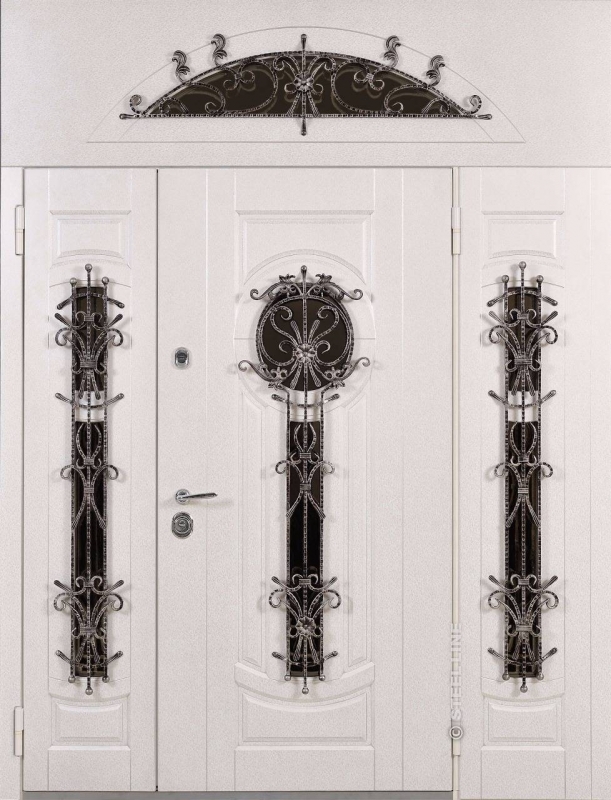 Входная дверь с кованой ручкой и фрамугой №6 представляет собой элегантное и надежное решение для тех, кто ценит не только безопасность, но и стиль. Эта модель идеально подойдет для оформления парадных входов в дома и офисы. Внешняя отделка из плиты МДФ придает двери современный и чистый вид, который сохраняется долго благодаря стойкости к внешним воздействиям. Благодаря профильной трубе с толщиной металла 2 мм и ребрам жесткости, конструкция двери гарантирует прочность и долговечность. Дополнительный элемент — кованая ручка, которая добавляет изысканности и подчеркивает высокий класс изделия. Стандартная комплектация не включает шумо- и теплоизоляцию, однако она может быть установлена по желанию. Резиновый уплотнитель с двумя контурами обеспечит хорошую герметичность, защищая от ветра и пыли. Подходит для установки как в частных домах, так и в офисах, привлекая внимание своим необычным и стильным дизайном. Входная дверь с кованой ручкой и фрамугой №6 от производителя: быстрое изготовление и монтаж в Щербинке, индивидуальные размеры, широкий выбор материалов и фурнитуры, официальная гарантия до 10 лет.