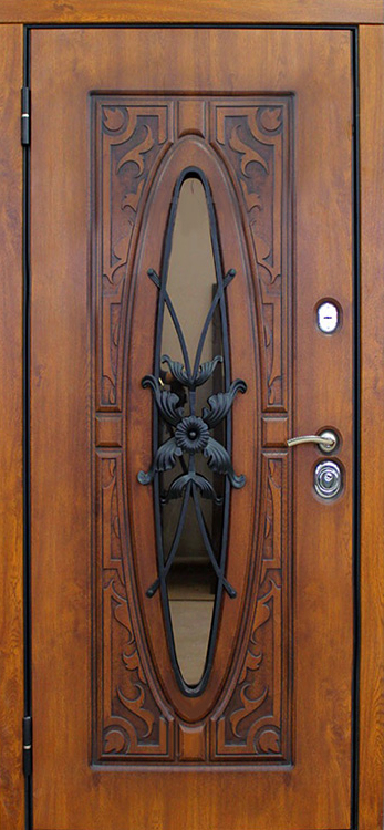 В частном доме дверь должна быть не просто барьером, а настоящей визитной карточкой, и именно эту задачу решает входная дверь со стеклом и ковкой №23. Натуральное дерево в отделке придает ей благородный и теплый вид, а декоративная ковка превращает конструкцию в выразительный элемент архитектуры. Внутри скрыт стальной каркас с листом металла 1,5 мм и противосъёмными блокираторами, что обеспечивает прочность и устойчивость к взлому. Особого внимания заслуживает наличие терморазрыва как в коробке, так и в полотне: он защищает от промерзания, исключает появление конденсата и помогает сохранять тепло зимой и прохладу летом. Тройной контур магнитного уплотнения усиливает герметичность и снижает уровень уличного шума, а пенопласт повышенной плотности в качестве наполнителя добавляет теплоизоляции. Входная дверь в частный дом со стеклом и ковкой №23 гармонично сочетает надежность и эстетику, позволяя владельцу адаптировать её под стиль фасада с помощью дополнительных декоративных решений. Входная дверь в частный дом со стеклом и ковкой №23 от производителя: быстрое изготовление и монтаж в Щербинке, индивидуальные размеры, широкий выбор материалов и фурнитуры, официальная гарантия до 10 лет.