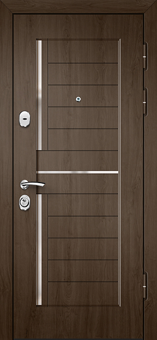 Глубокий оттенок венге всегда выглядит благородно и современно, а декоративная панель придаёт полотну завершённый стильный образ. Дверь МДФ цвета венге с внешней декоративной панелью №538 подходит для установки как в частных домах, так и в квартирах или офисах, где ценят сочетание надёжности и эстетики. Плиты МДФ отличаются прочностью, стойкостью к мелким механическим повреждениям и долго сохраняют первоначальный вид без потери насыщенности цвета. Конструкция выполнена на основе стального каркаса с листом металла толщиной 2 мм и рёбрами жёсткости, что обеспечивает высокий уровень прочности. Два контура уплотнения повышают комфорт эксплуатации, защищая от сквозняков. Дополнительно дверь можно оснастить шумо- и теплоизоляцией, зеркалом, стеклопакетом или коваными элементами, сделав её не только практичной, но и индивидуальной деталью интерьера. Дверь МДФ цвета венге с внешней декоративной панелью №538 от производителя: быстрое изготовление и монтаж в Щербинке, индивидуальные размеры, широкий выбор материалов и фурнитуры, официальная гарантия до 10 лет.