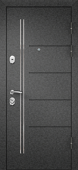 Порошковая входная дверь №65 объединяет прочность металла и практичную отделку, делая её универсальным выбором для квартиры, офиса или подъезда. Каркас и полотно собраны из профильной трубы, усиленной ребрами жесткости, а стальной лист толщиной 2 мм придает конструкции дополнительную устойчивость к нагрузкам. Снаружи нанесено молотковое напыление — покрытие, стойкое к царапинам и атмосферным воздействиям, благодаря чему дверь долго сохраняет аккуратный внешний вид. Внутренняя сторона оформлена ламинированными панелями, создающими ощущение тепла и комфорта. Два резиновых контура уплотнения помогают отсечь сквозняки и пыль, при необходимости можно добавить шумо- и теплоизоляцию. Модель №65 сочетает надежность и лаконичность, а её внешний вид гармонично впишется как в жилое пространство, так и в деловую среду. Порошковая входная дверь №65 от производителя: быстрое изготовление и монтаж в Щербинке, индивидуальные размеры, широкий выбор материалов и фурнитуры, официальная гарантия до 10 лет.