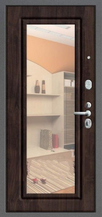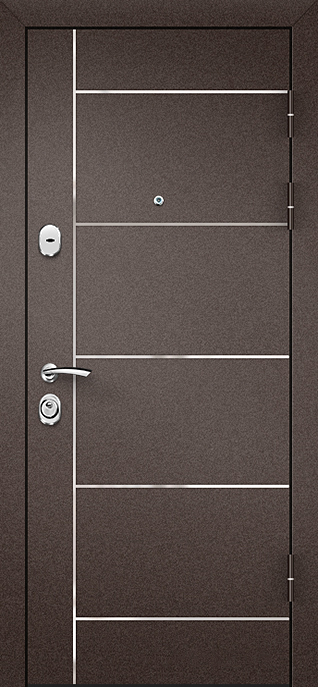 Каркас из профильной трубы и стальной лист толщиной 2 мм обеспечивают прочность конструкции и устойчивость к взлому, а два контура уплотнителей защищают помещение от сквозняков и уличного шума. Входная дверь в квартиру с зеркалом №10 выделяется сочетанием практичного молоткового напыления снаружи и аккуратной плиты МДФ внутри. Такое покрытие не боится механических повреждений и перепадов температуры, долго сохраняя первоначальный вид. Зеркало на внутренней стороне делает прихожую светлее и визуально просторнее, заменяя полноценное настенное. Дополнительные блокираторы и система ребер жёсткости усиливают надежность. Возможность изготовления в любых размерах позволяет адаптировать модель под особенности квартиры, офиса или частного дома, сохранив баланс между эстетикой и безопасностью. Входная дверь в квартиру с зеркалом №10 от производителя: быстрое изготовление и монтаж в Щербинке, индивидуальные размеры, широкий выбор материалов и фурнитуры, официальная гарантия до 10 лет.