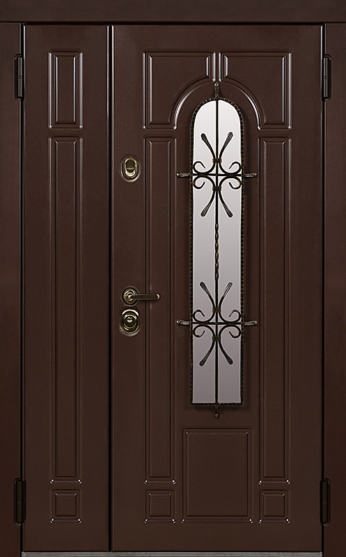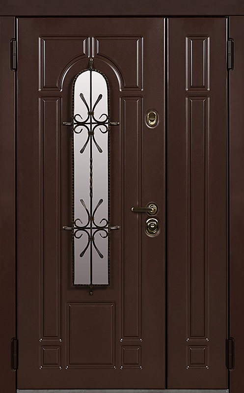 Эта металлическая двухстворчатая дверь с арочным стеклопакетом №15 представляет собой идеальный баланс между эстетикой и прочностью. Арочное стекло добавляет в её дизайн утончённость, а ковка в декоре придаёт изысканный, но в то же время крепкий и надёжный вид. Плита МДФ, используемая как для внешней, так и для внутренней отделки, не только сохраняет прекрасный внешний вид, но и устойчива к механическим повреждениям. Металлическая двухстворчатая дверь с арочным стеклопакетом №15 от производителя: быстрое изготовление и монтаж в Щербинке, индивидуальные размеры, широкий выбор материалов и фурнитуры, официальная гарантия до 10 лет.
