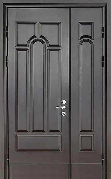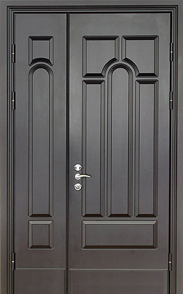 Металлическая двухстворчатая дверь для дома цвета графит №27 – это стильное и надежное решение для вашего жилья. Внешняя и внутренняя отделка выполнены из МДФ, что придает двери изысканный вид и увеличивает её стойкость к механическим повреждениям. Цвет графит придаёт двери современный и элегантный оттенок, который легко впишется в интерьер как частных домов, так и современных офисов. Металлическая двухстворчатая дверь для дома цвета графит №27 от производителя: быстрое изготовление и монтаж в Щербинке, индивидуальные размеры, широкий выбор материалов и фурнитуры, официальная гарантия до 10 лет.