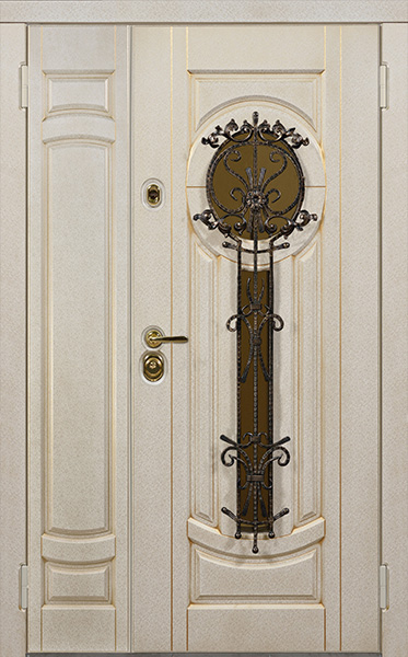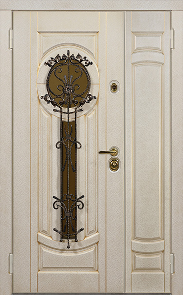 Двухстворчатая парадная дверь с ковкой и стеклом белая №30 — это сочетание красоты и надёжности. Конструкция из профильной трубы 50х25 мм и металлического листа толщиной 2 мм обеспечивает долговечность и стойкость к внешним воздействиям. Элементы ковки придают двери изысканный вид, а стеклопакет позволяет создать атмосферу лёгкости и прозрачности. Внешняя и внутренняя отделка выполнены из плиты МДФ, что делает дверь не только привлекательной, но и устойчивой к механическим повреждениям. Для дополнительной герметичности используются уплотнители с двумя контурами, а блокираторы обеспечат безопасность. Вариативность размеров и возможность добавления дополнительных опций, таких как шумо- и теплоизоляция, делают эту модель универсальной для установки в любом интерьере. Двухстворчатая парадная дверь с ковкой и стеклом белая №30 от производителя: быстрое изготовление и монтаж в Щербинке, индивидуальные размеры, широкий выбор материалов и фурнитуры, официальная гарантия до 10 лет.