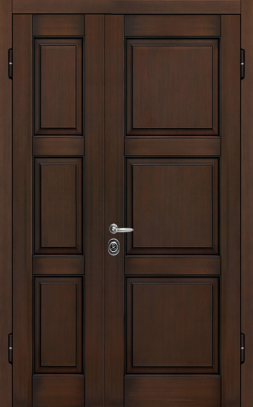 Двойная филенчатая дверь для загородного дома венге №7 сочетает в себе элегантность и прочность. Ее внешняя отделка выполнена из панелей МДФ с ПВХ, что придает двери современный вид, а также обеспечивает устойчивость к механическим повреждениям и долговечность. Каркас из профильной трубы 50х25 мм и полотно толщиной 2 мм гарантируют надежность и устойчивость к нагрузкам. Ребра жесткости из профильных труб 40х25 мм усиливают конструкцию, а уплотнение с двумя контурами защищает от проникновения влаги и пыли. Замки "Просам" и "Мосрентген" с тремя ригелями обеспечивают высокий уровень безопасности. В дверь можно добавить дополнительные элементы, такие как стеклопакет, зеркало или кованые детали, что позволяет адаптировать ее под любой интерьер. Терморазрывы в коробке и полотне способствуют лучшей теплоизоляции, обеспечивая комфорт в любое время года. Двойная филенчатая дверь для загородного дома венге №7 от производителя: быстрое изготовление и монтаж в Щербинке, индивидуальные размеры, широкий выбор материалов и фурнитуры, официальная гарантия до 10 лет.