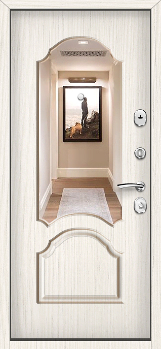 Входная дверь с зеркальной вставкой для прихожей №21 — это не просто надежное, но и стильное решение для частных домов, квартир и офисов. Благодаря прочному каркасу из профильной трубы 50х25 мм и металлическому полотну толщиной 2 мм, дверь гарантирует долговечность и высокую степень защиты. Внешняя отделка с порошковым напылением не только добавляет эстетичности, но и защищает от атмосферных воздействий, а внутренняя отделка из панелей МДФ ПВХ устойчива к механическим повреждениям. Вставка зеркала на двери добавляет современности и практичности, расширяя пространство прихожей. Два контура резинового уплотнителя эффективно предотвращают попадание холода и шума. Дверь оборудована двумя замками, что повышает безопасность. Также можно заменить замки на более современные модели и добавить опции, такие как стеклопакет или видеодомофон, что делает эту модель еще более универсальной. Входная дверь с зеркальной вставкой для прихожей №21 от производителя: быстрое изготовление и монтаж в Щербинке, индивидуальные размеры, широкий выбор материалов и фурнитуры, официальная гарантия до 10 лет.