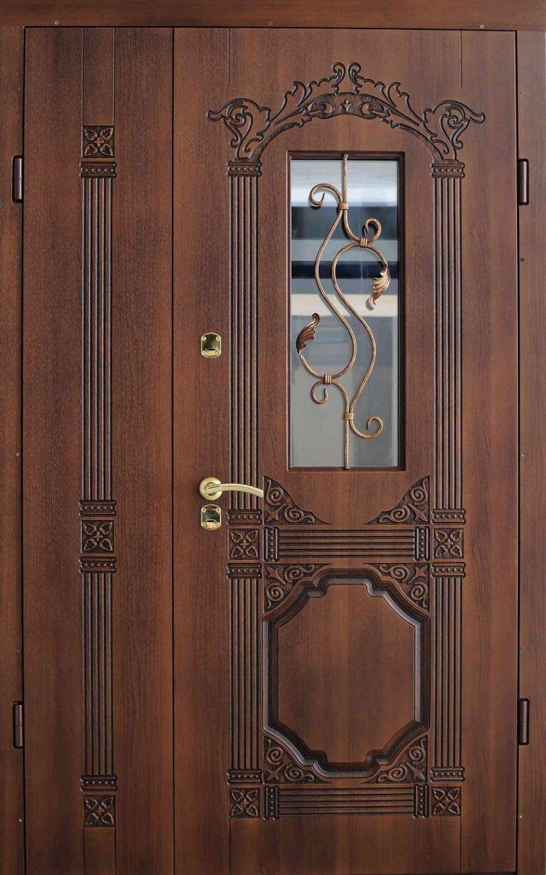 Эксклюзивная глянцевая дверь в частный дом с нестандартной фрезеровкой №24