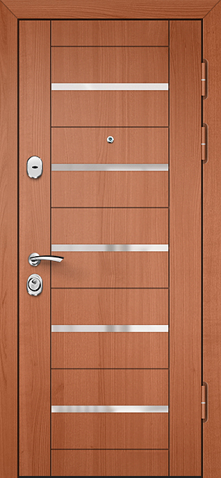 Современная входная дверь с цилиндровым замком №21 сочетает строгую надежность металлической конструкции и аккуратный внешний вид. Каркас из профильной трубы и лист стали толщиной 2 мм образуют прочный щит, усиленный ребрами жесткости и блокираторами. Накладки из МДФ придают полотну более «домашний» облик: материал не только эстетичен, но и практичен — ПВХ-покрытие стойко переносит небольшие повреждения и сохраняет первозданный вид долгие годы. Такая дверь подходит для квартиры, офиса или частного дома, где важно совместить защиту и стиль. Цилиндровый замок обеспечивает удобное и надежное закрывание, а два контура резинового уплотнителя защищают от сквозняков и лишнего шума. При желании возможно дополнить конструкцию тепло- и шумоизоляцией или установить замки другого типа, включая современные электронные системы. Современная входная дверь с цилиндровым замком №21 от производителя: быстрое изготовление и монтаж в Щербинке, индивидуальные размеры, широкий выбор материалов и фурнитуры, официальная гарантия до 10 лет.